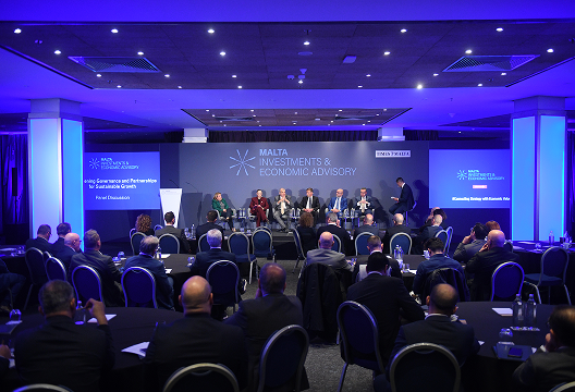 A panel discussion featuring leading economists Gordon Cordina, Stephanie Vella, and Kirsten Cutajar Miller, alongside public sector officials Karl Azzopardi (CEO, MIEA), Robert Falzon (COO, MIEA), and Ronald Mizzi (also Permanent Secretary within OPM for Malta Vision 2050), was hosted by well-known presenter Keith Demicoli.